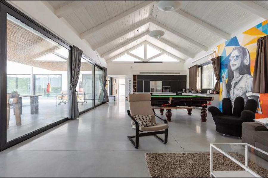 בחצר המתחם שולחן פינג פונג, שולחן ביליארד - סנוקר, מדשאה, מתקן מנגל, פרגולת צל, חנייה קרובה, פינת ישיבה עם נוף, ריהוט גן בחצר.