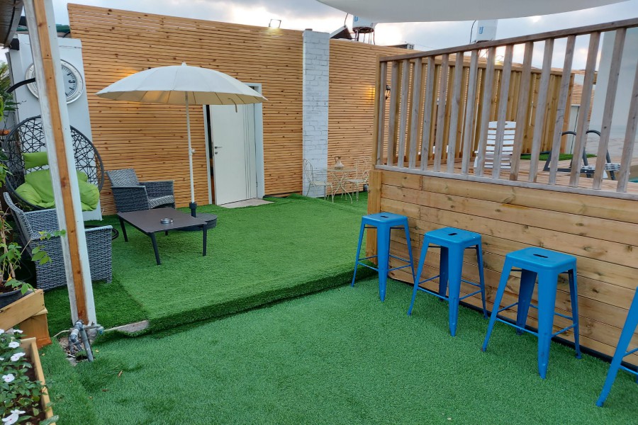| ג`קוזי פרטי למתחם. מיטות שיזוף, פרגולת צל, תאורה ללשעות הלילה, חנייה קרובה, ריהוט גן בחצר, שימשית צל, פרחי נוי, ספסל ישיבה. | |